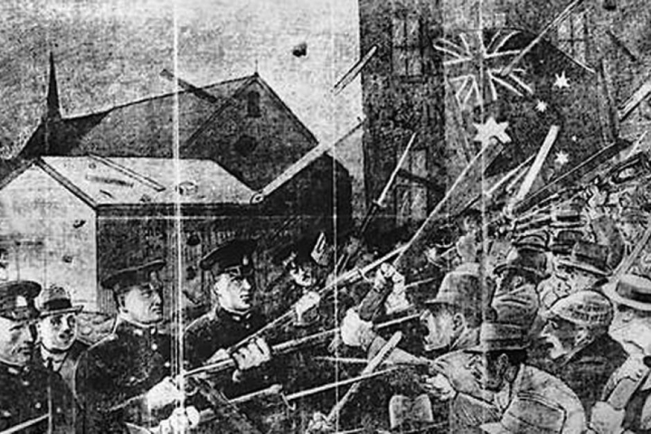 Photo: Racial and political tensions reached boiling point before the Red Flag Riots broke out in Brisbane. (State Library of Queensland)